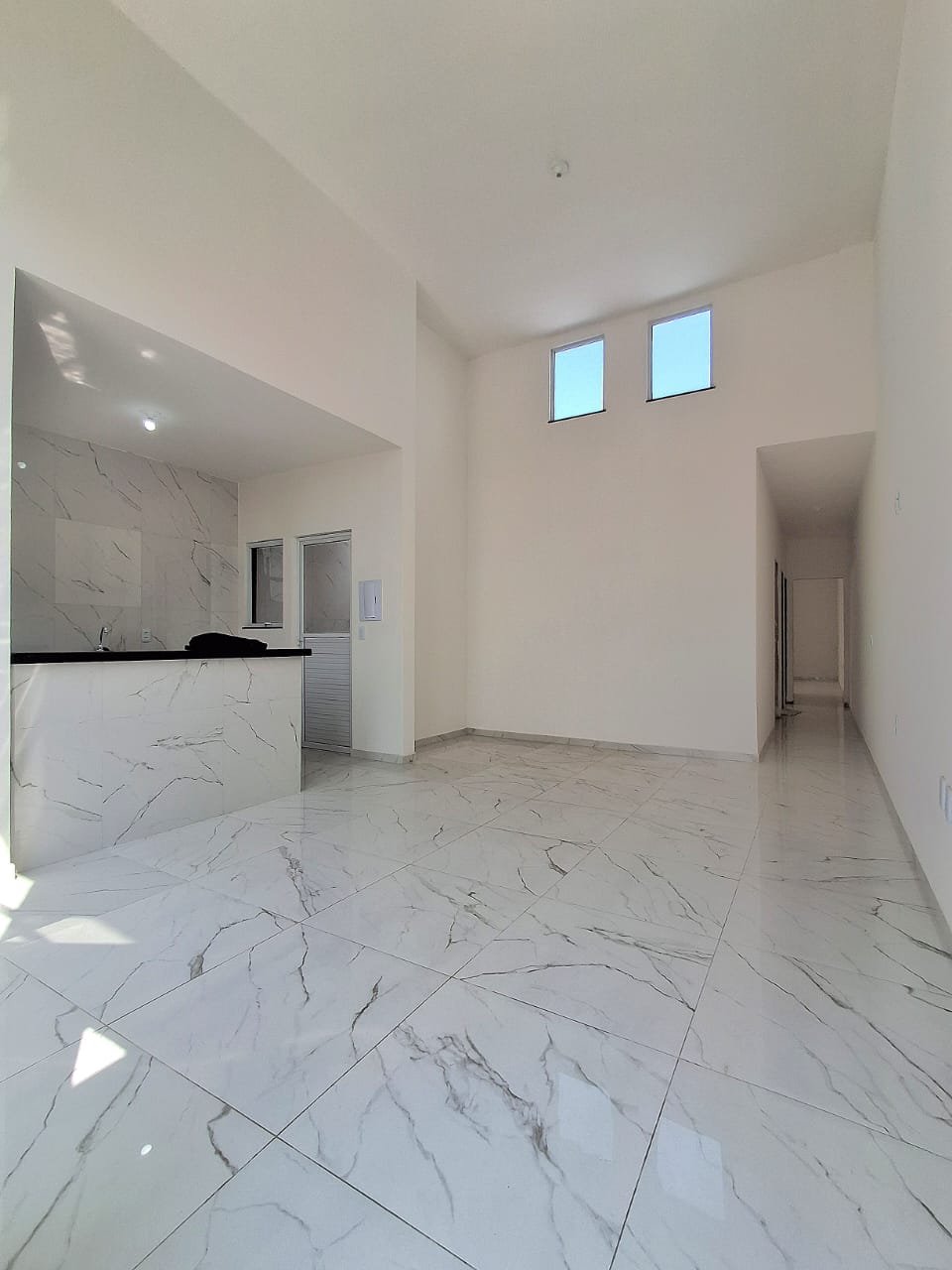 Casa plana à venda em terreno de 6x30 metros, com área construída de 95m², projetada para oferecer conforto e funcionalidade em cada detalhe. A sala principal conta com pé direito elevado de 3 metros, proporcionando amplitude, ótima ventilação e entrada abundante de luz natural. A cozinha americana harmoniza perfeitamente com a sala, possibilitando integração total dos ambientes, ideal para momentos de convivência em família e convidados.