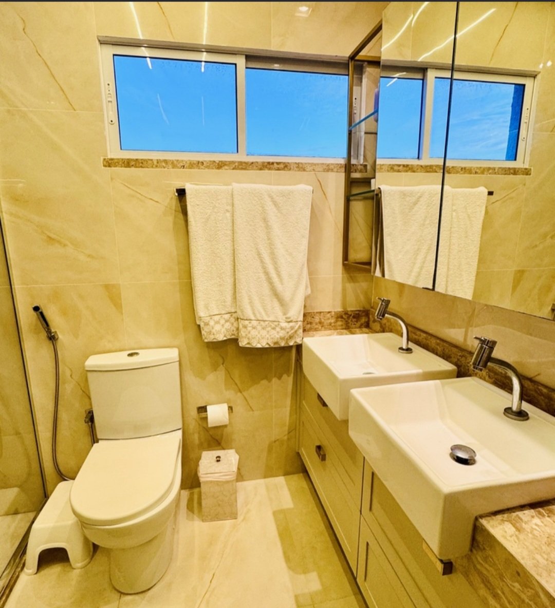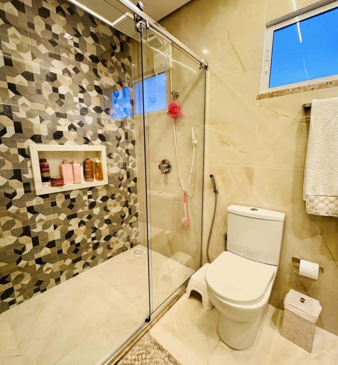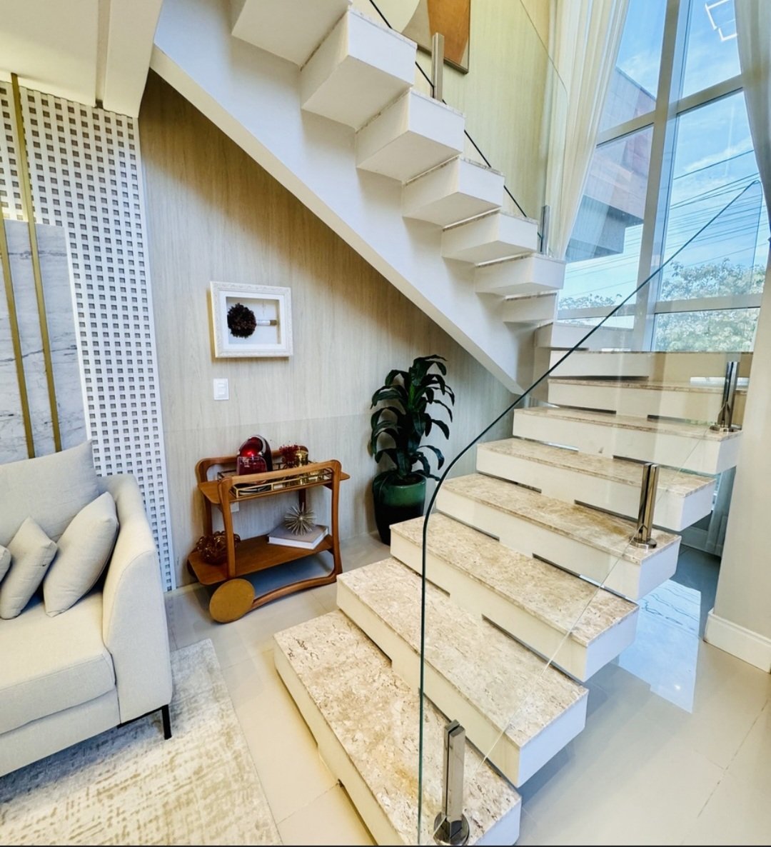 Todas com banheiros completos, closets espaçosos e ótima iluminação natural através de janelas amplas e claraboias. A suíte master é um verdadeiro refúgio, com varanda privativa e vista para o jardim.