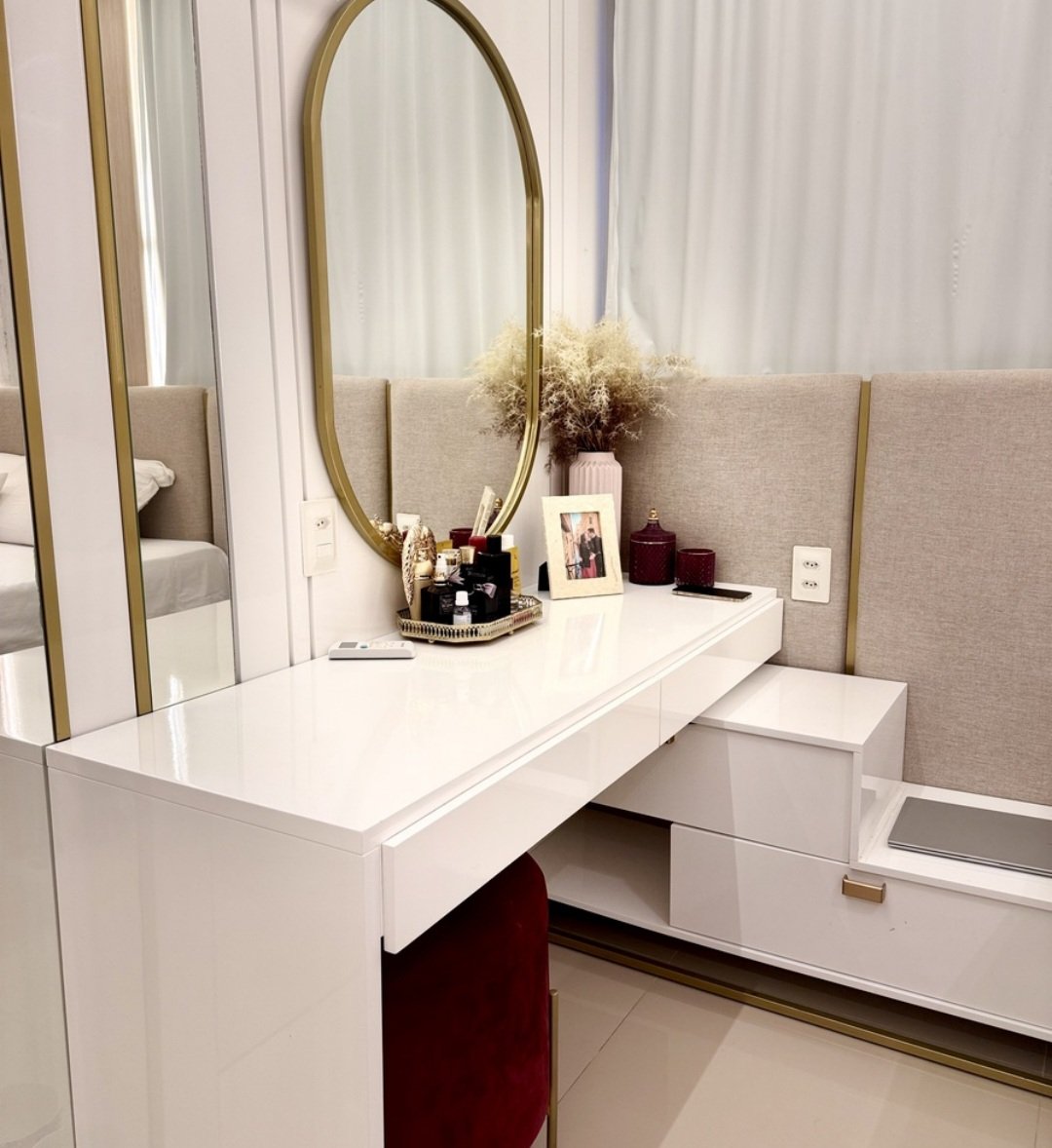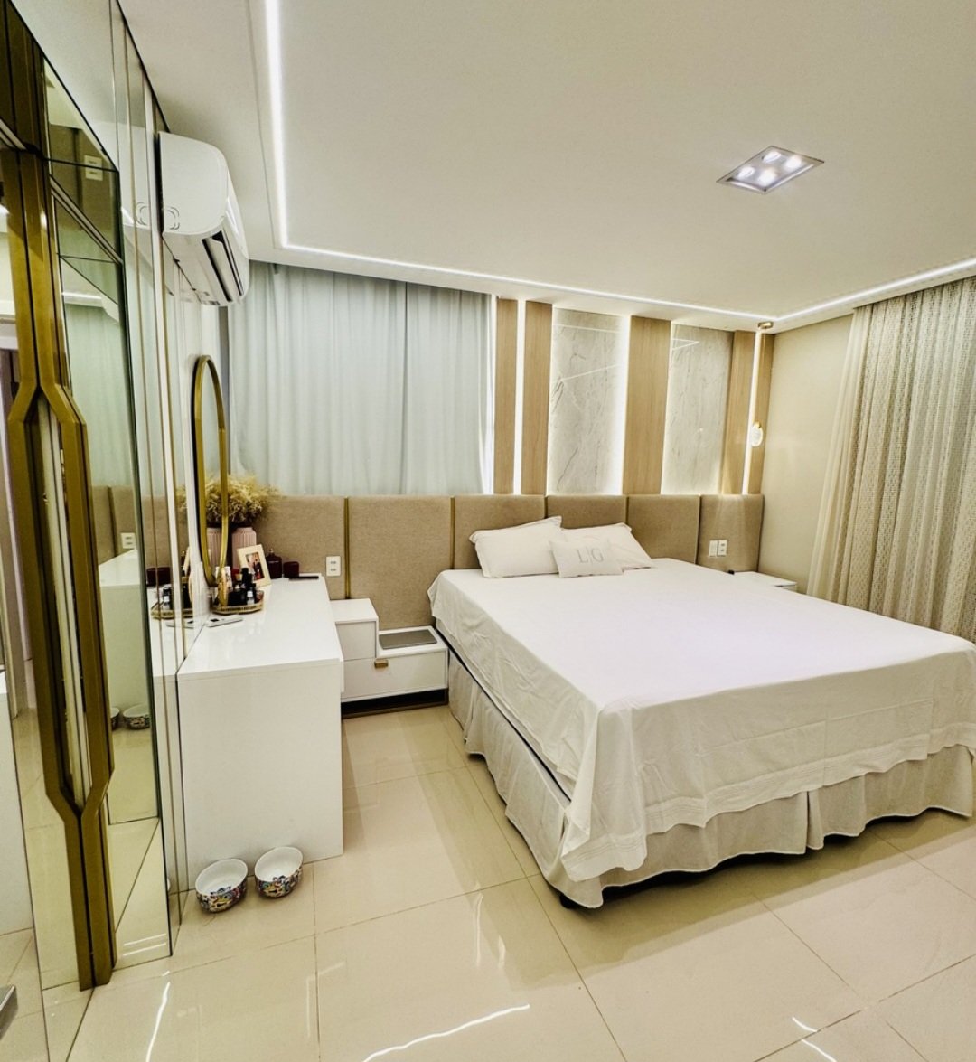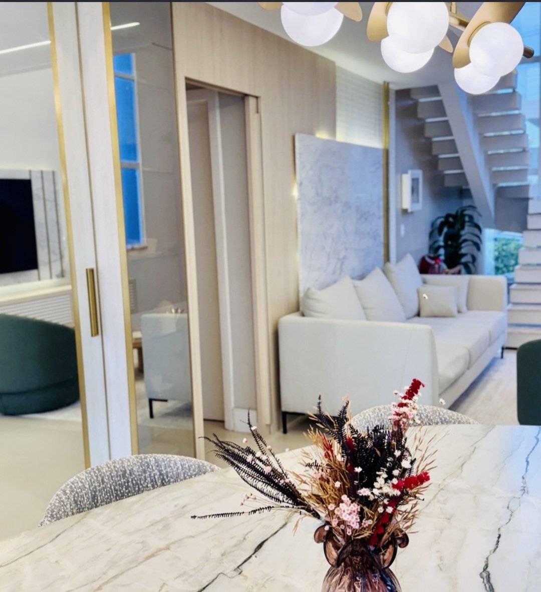 Entregue na modalidade porteira fechada, 100% mobiliada e decorada com móveis sob medida em alto padrão (marcas como Etna e Tok&Stok), ar-condicionado em todos os ambientes, automação residencial (iluminação, persianas e som ambiente via app) e acabamentos premium: piso porcelanato retificado, portas pivotantes, bancadas em quartzo e esquadrias de vidro temperado.