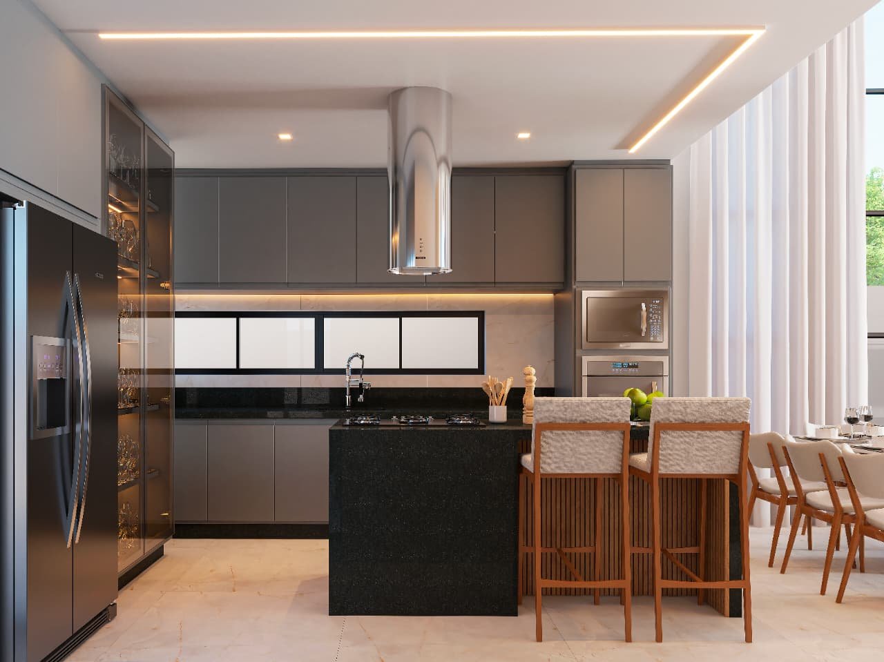- **Cozinha integrada à área gourmet**, promovendo convivência e praticidade.
