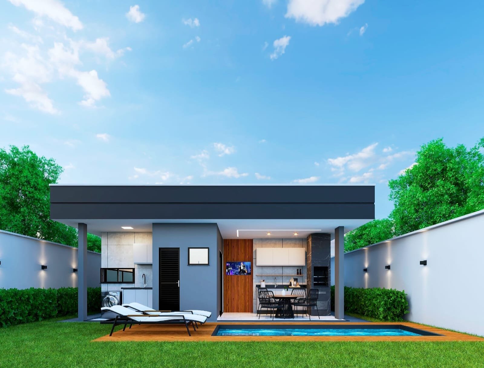 Em condomínio nobre, **Quadra W4, Lote 11**, com **terreno de 275 m²** e **área construída de 144 m²**. Casa plana moderna, projetada para máxima aproveitamento do espaço, com **previsão de entrega em dezembro** – perfeita para quem busca morar com sofisticação imediata.