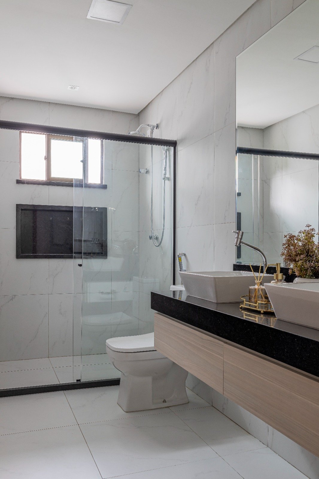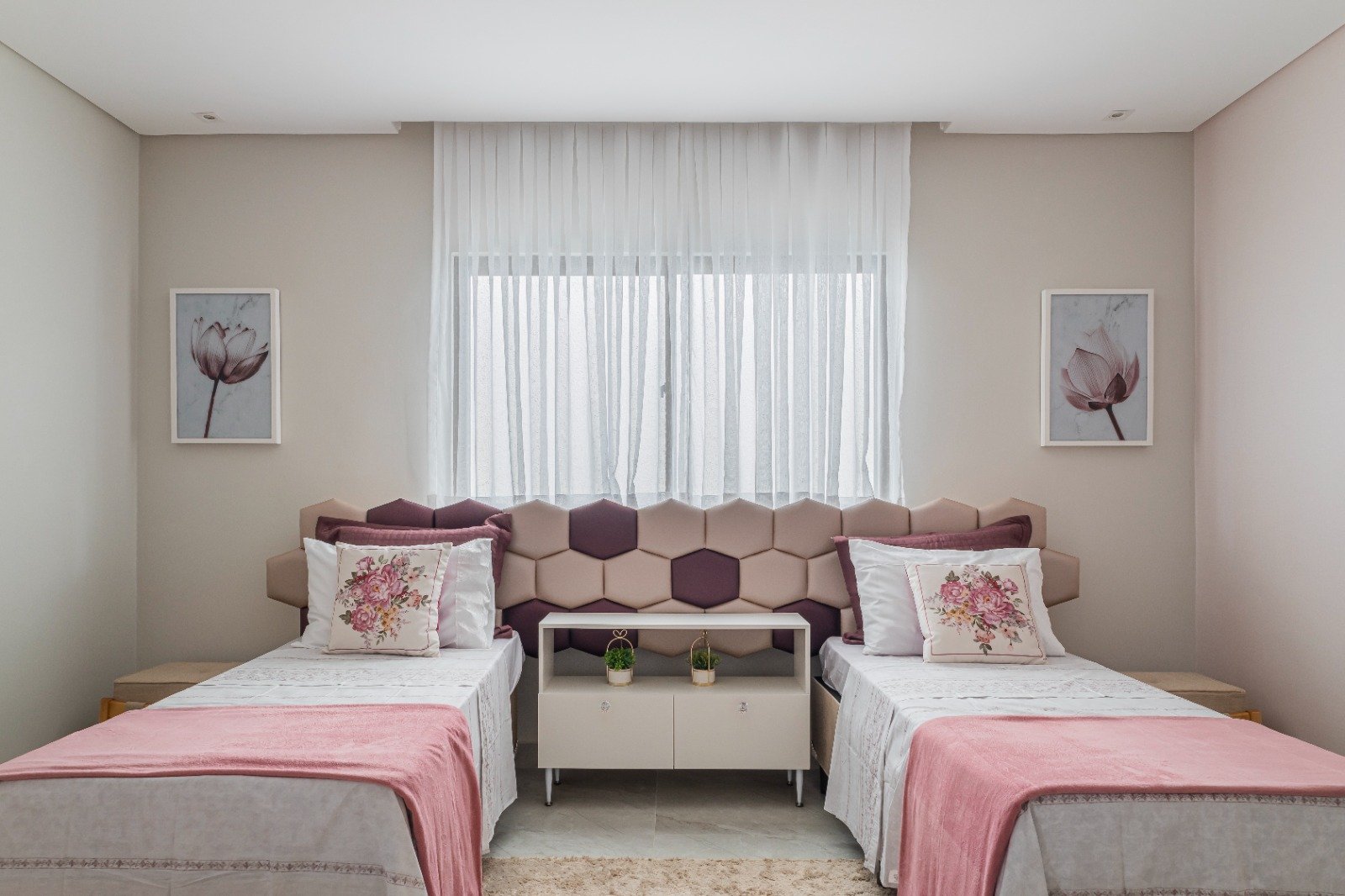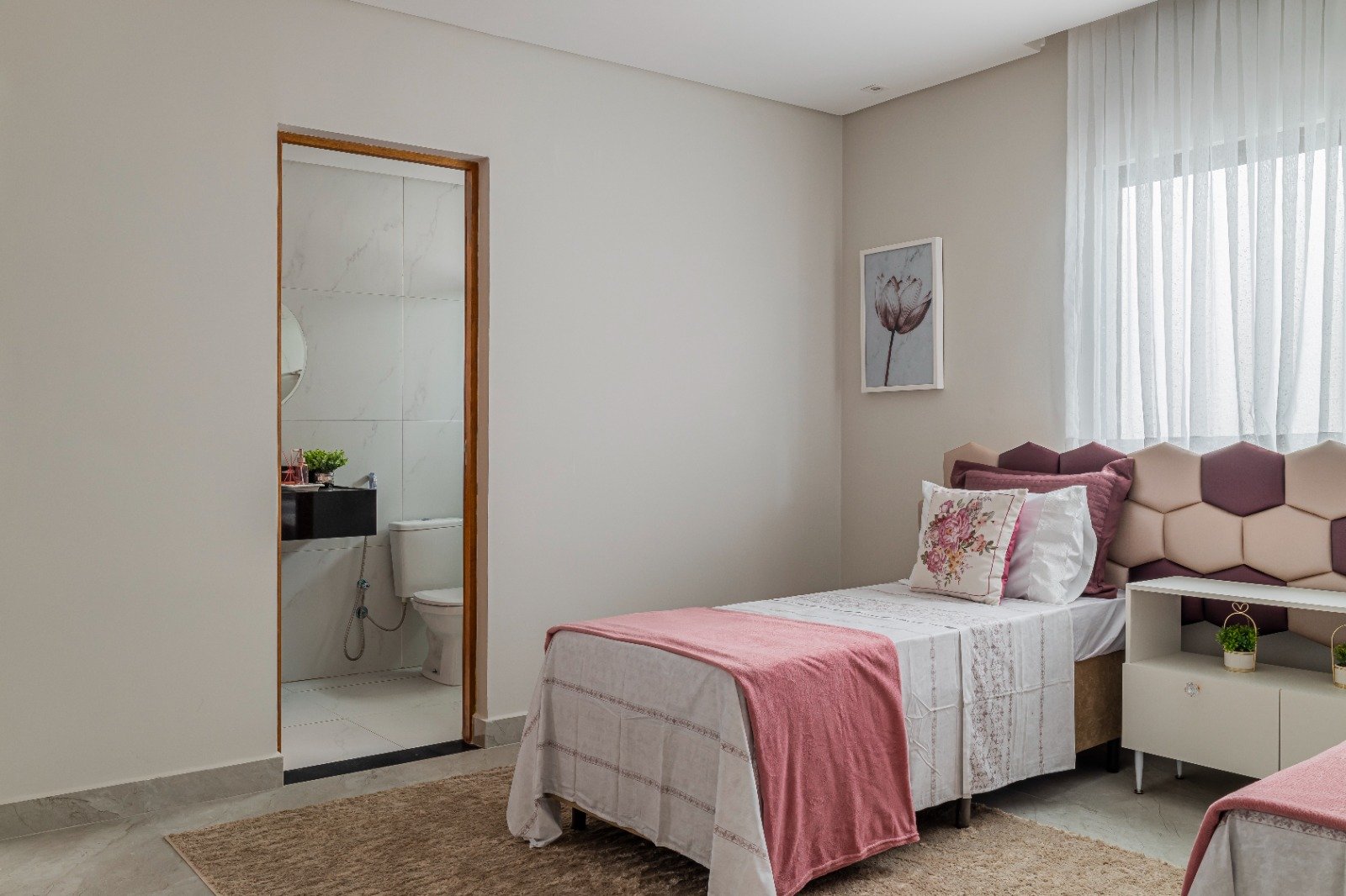 No piso superior, a suíte master proporciona privacidade e conforto, enquanto a segunda suíte é ideal para familiares ou hóspedes. Os ambientes são amplos, bem ventilados e com acabamento de alto padrão.