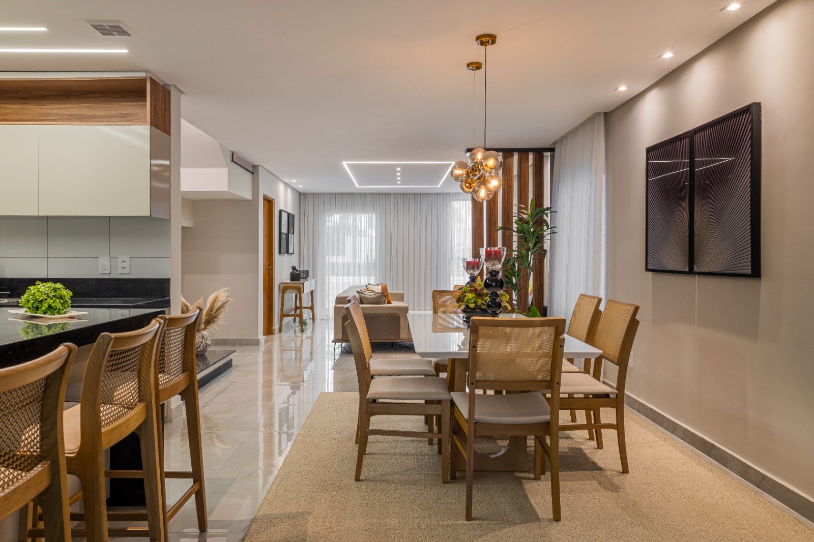 No térreo, você encontra uma sala de estar e jantar integradas, perfeitas para receber amigos e criar memórias inesquecíveis. A cozinha com ilha gourmet é um convite para quem ama cozinhar e deseja unir praticidade com estilo.