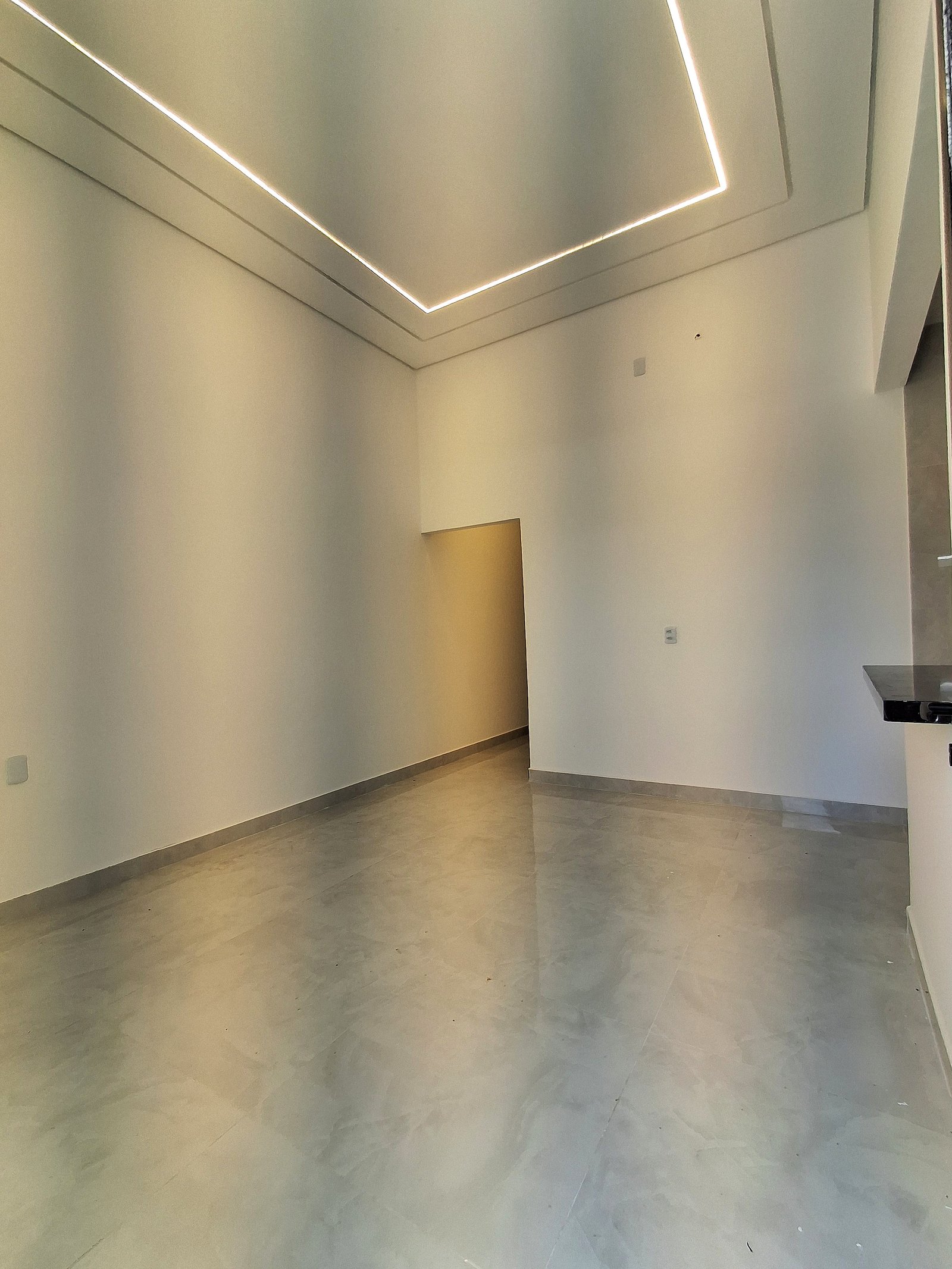 Salas e Quartos: Piso porcelanato off-white, paredes pintadas branco neve Coral, forro gesso acartonado e pele de vidro alumínio preto!