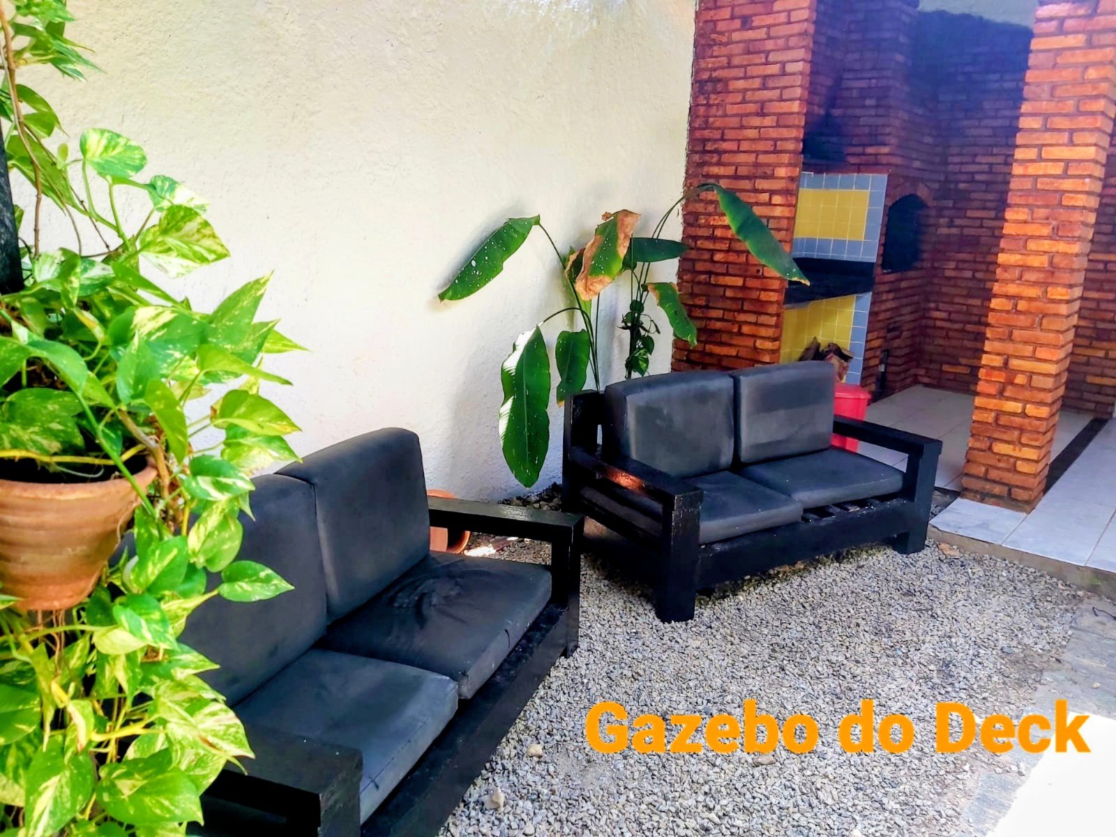São 6 quartos, sendo 3 suítes (incluindo 2 bangalôs externos e 1 suíte master com loft e varanda), além de sala de TV, cozinha americana completa, e 5 banheiros bem distribuídos. O espaço externo é um convite ao lazer: piscina privativa ampla, deck com churrasqueira e gazebo, tudo cercado de muito verde e total privacidade.