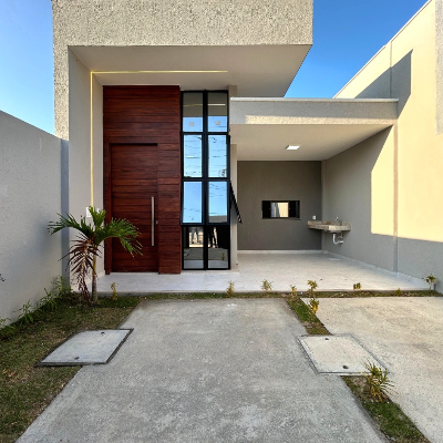 Casa plana com 3 suítes, varanda gourmet e amplo recuo frontal, localizada no Loteamento Cidade Verde, Messejana, pronta para morar e com financiamento facilitado.?