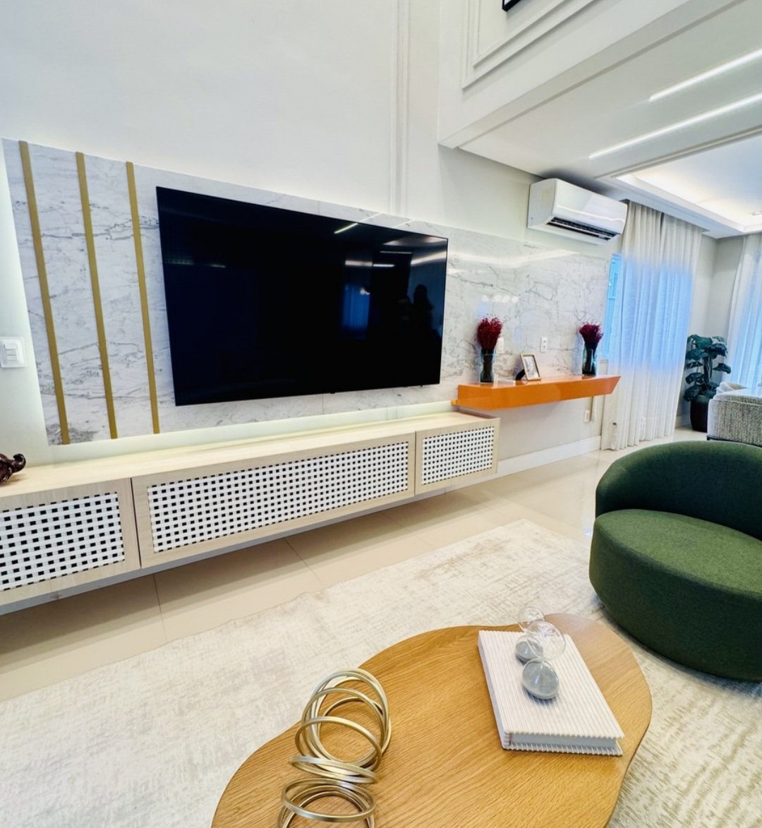 Entregue na modalidade porteira fechada, 100% mobiliada e decorada com móveis sob medida em alto padrão (marcas como Etna e Tok&Stok), ar-condicionado em todos os ambientes, automação residencial (iluminação, persianas e som ambiente via app) e acabamentos premium: piso porcelanato retificado, portas pivotantes, bancadas em quartzo e esquadrias de vidro temperado.