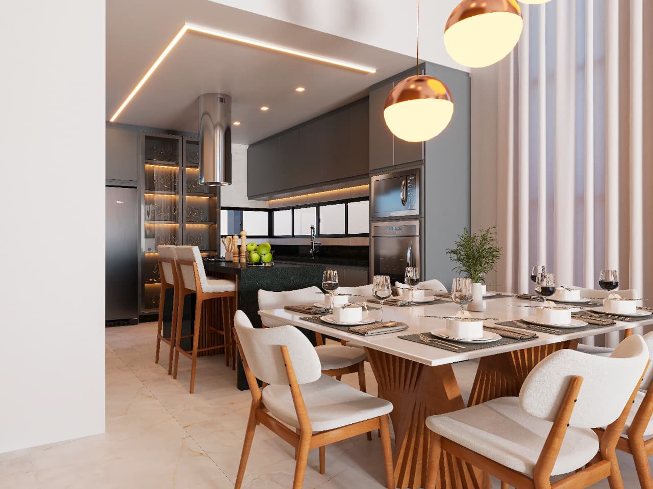 - **Cozinha integrada à área gourmet**, promovendo convivência e praticidade.