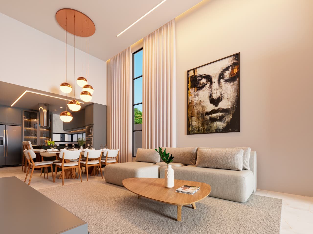 - **Sala de estar e jantar amplas**, com fluxo natural de luz e circulação.