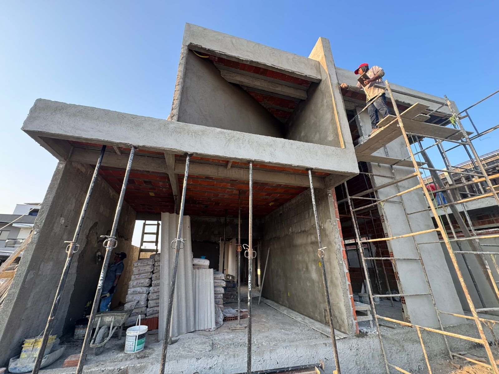 A área construída é de 143,88 m², distribuída inteligentemente em um terreno de 275 m², com revestimento de porcelanato de alto padrão (94,5 x 94,5 cm) que confere elegância e facilidade de manutenção. A fachada contemporânea destaca-se pelo design moderno e clean, valorizando o imóvel.