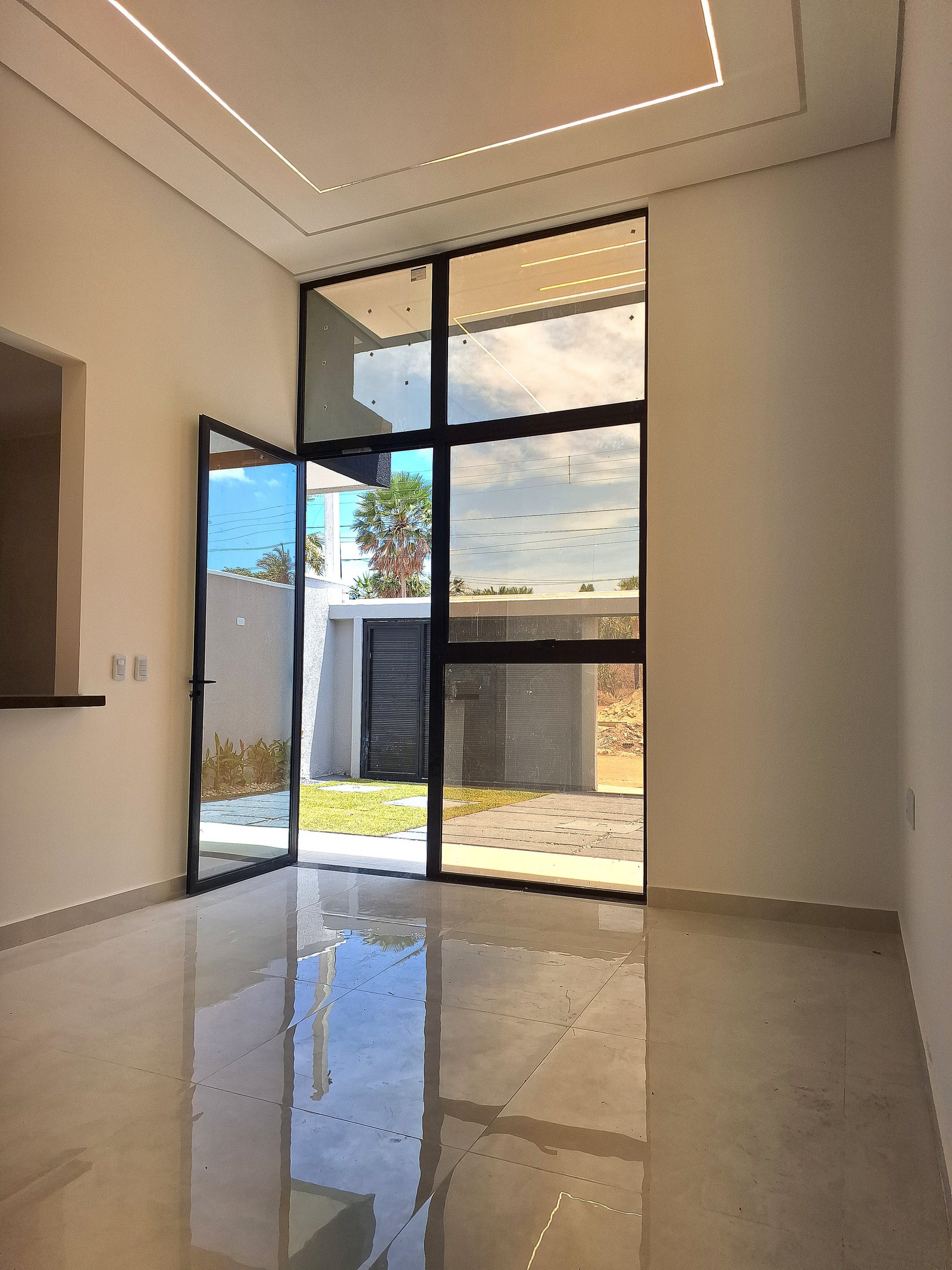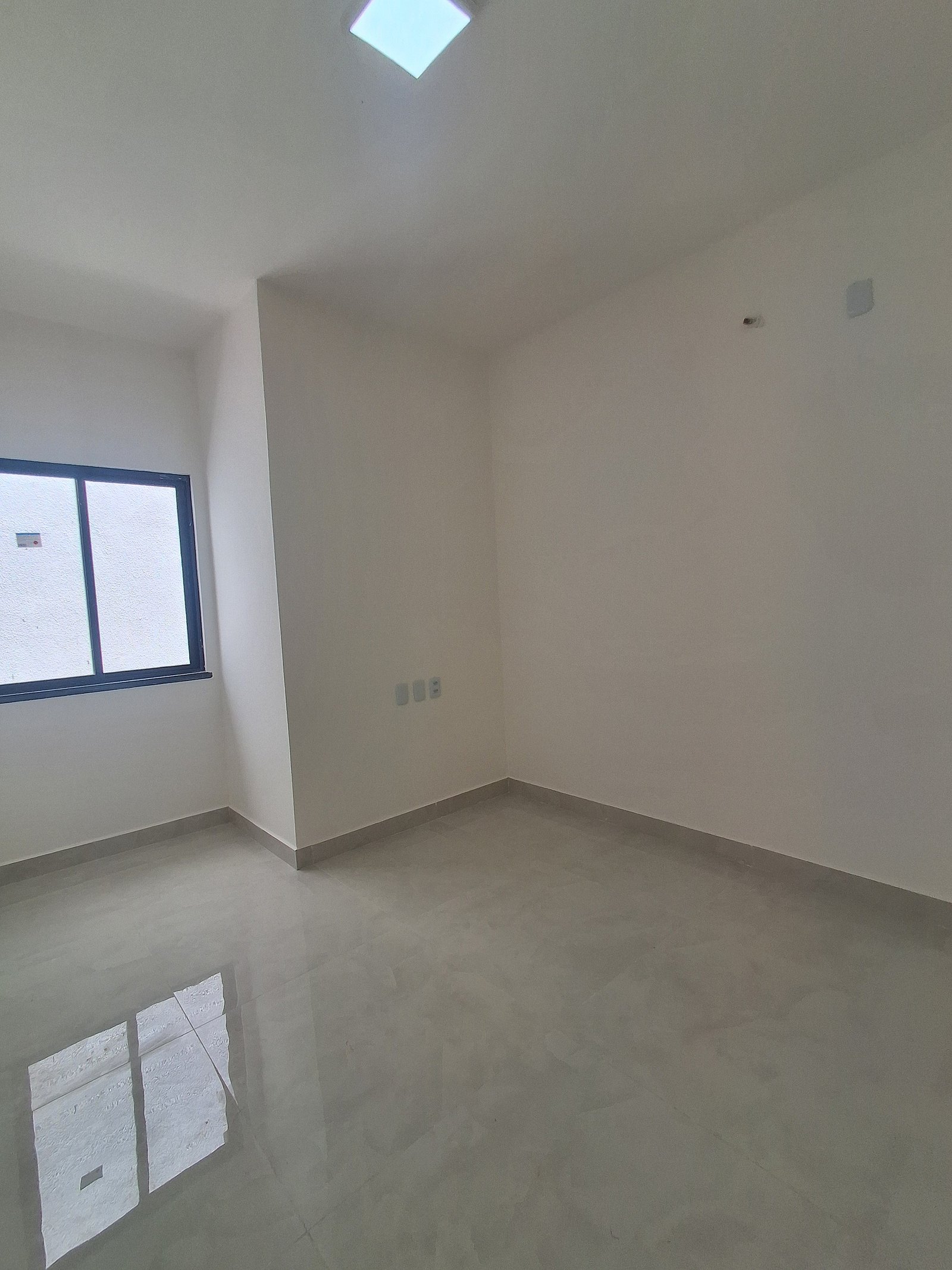 Salas e Quartos: Piso porcelanato off-white, paredes pintadas branco neve Coral, forro gesso acartonado e pele de vidro alumínio preto!