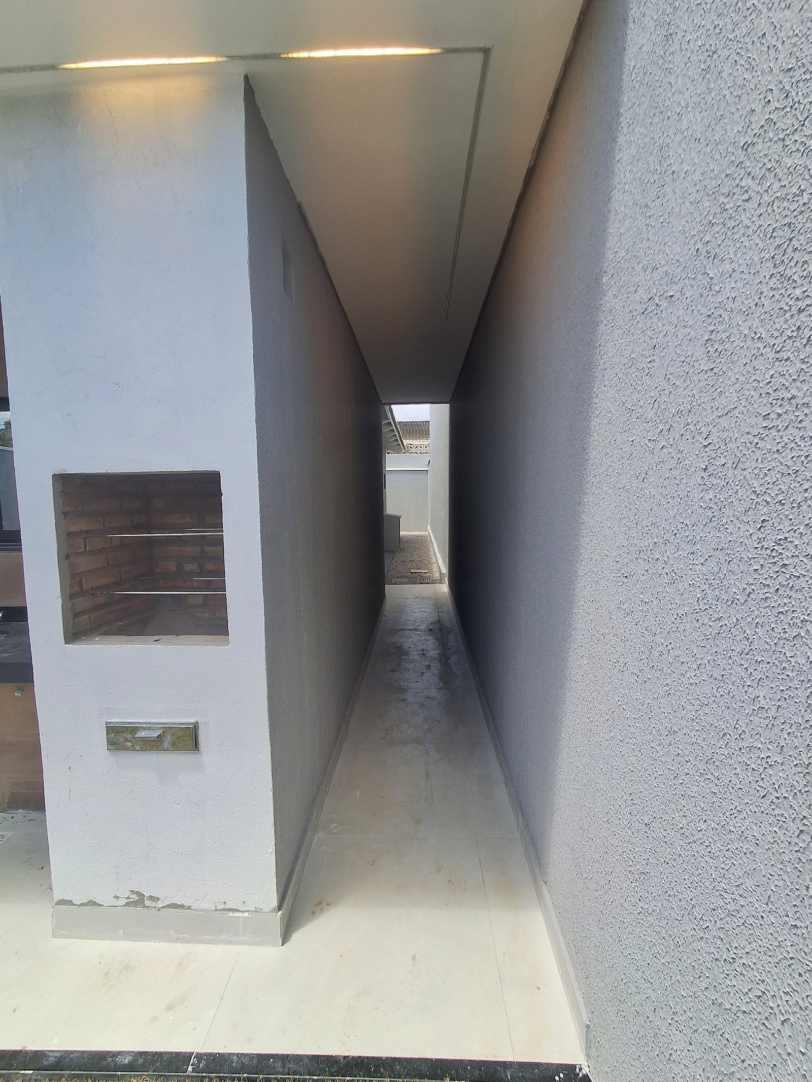 Paredes com textura acrílica cinza e pintura branco neve Coral.
